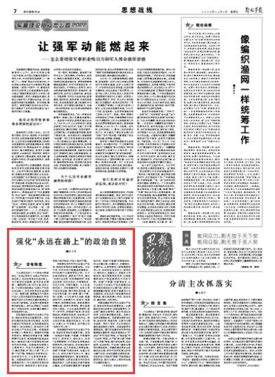 習主席在黨的二十大報告中深刻指出,“全黨必須牢記,全面從嚴治黨永遠在路上,黨的自我革命永遠在路上,決不能有松勁歇腳、疲勞厭戰(zhàn)的情緒”。著眼世界之變、時代之變、歷史之變,習主席創(chuàng)造性提出“全面從嚴治黨永遠在路上,黨的自我革命永遠在路上”這一重要論斷,凝聚著當代中國共產(chǎn)黨人立黨興黨強黨的執(zhí)著追求,標志著我們黨對正風肅紀反腐的規(guī)律性認識達到了新高度。在實現(xiàn)中國夢強軍夢的新征程上,我們必須強化“永遠在路上”的政治自覺,全面打贏反腐敗斗爭攻堅戰(zhàn)持久戰(zhàn)。