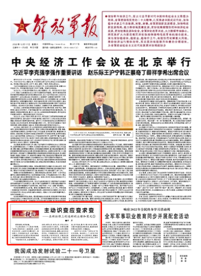 習主席在黨的二十大報告中強調,“全黨必須堅定信心、銳意進取,主動識變應變求變,主動防范化解風險”。新征程上,只有領時代先聲、立時代潮流,才能解答好時代發(fā)展變化帶來的新課題,不斷開創(chuàng)強國強軍事業(yè)新局面。