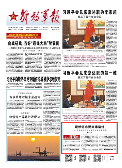 崇高的理想信念,是人民軍隊的精神支柱。廣大官兵應自覺傳承紅色基因,深化理論武裝,把理想信念牢固建立在對科學理論的理性認同、對歷史規(guī)律的正確認識、對國情軍情的準確把握上,真正做到虔誠而執(zhí)著、至信而深厚。