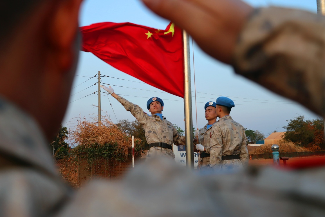 1月1日,中國第13批赴南蘇丹維和醫(yī)療分隊(duì)組織升國旗儀式。