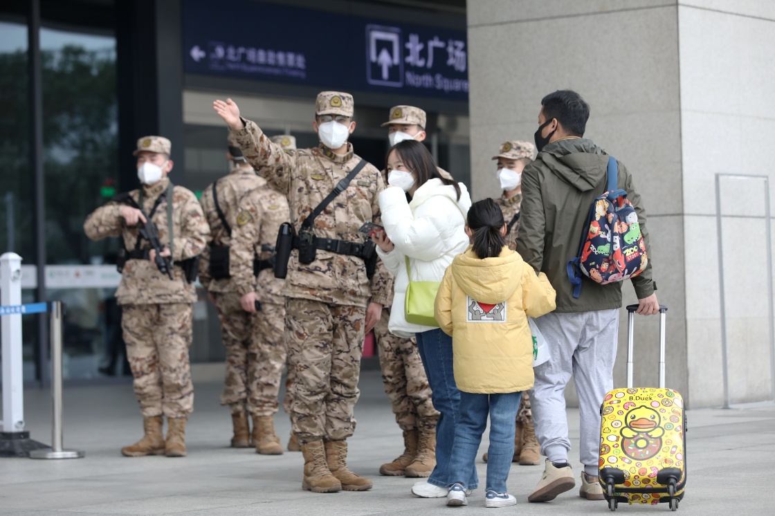 1月1日,武警安徽總隊(duì)合肥支隊(duì)官兵在合肥南站為過路旅客提供幫助。