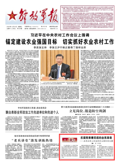 黨內(nèi)不能有腐敗分子的藏身之地,軍隊(duì)是拿槍桿子的,更不能有腐敗分子的藏身之地。軍隊(duì)越反腐越堅(jiān)強(qiáng)、越純潔越有戰(zhàn)斗力。我們必須以鍥而不舍、馳而不息的決心,以刮骨療毒、壯士斷腕的勇氣,堅(jiān)持不敢腐、不能腐、不想腐一體推進(jìn),同時(shí)發(fā)力、同向發(fā)力、綜合發(fā)力,堅(jiān)決把反腐敗斗爭(zhēng)進(jìn)行到底。