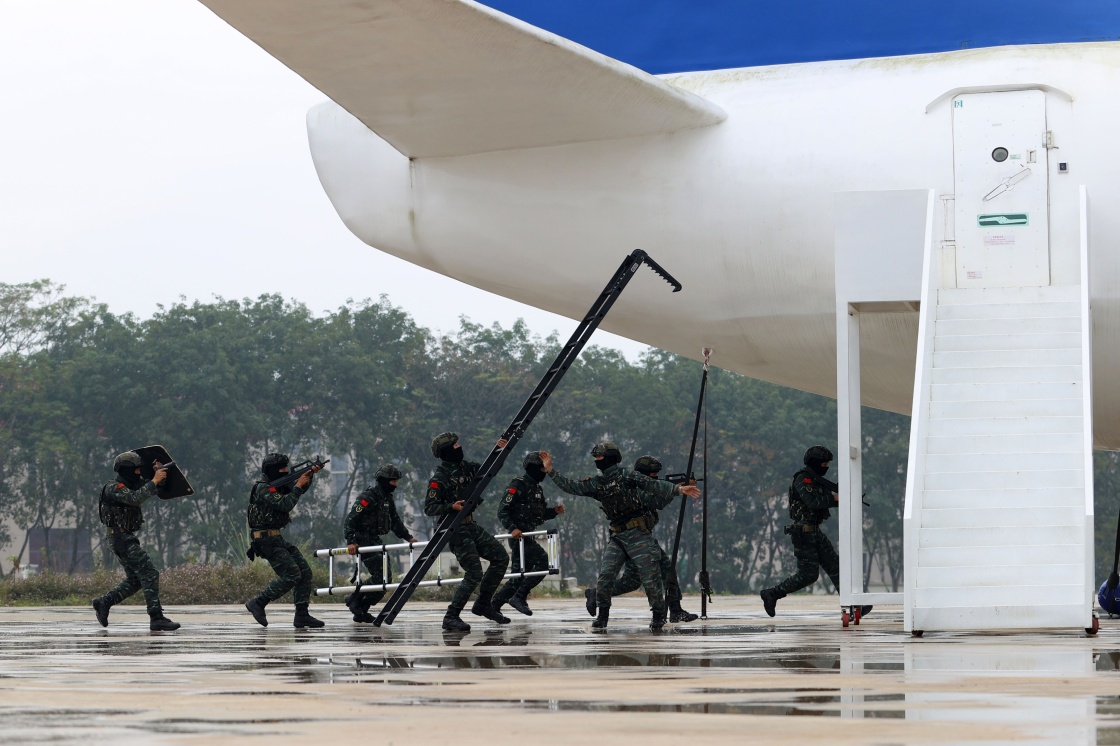 1月3日,武警海南總隊機動支隊特戰(zhàn)分隊進(jìn)行反劫機演練。