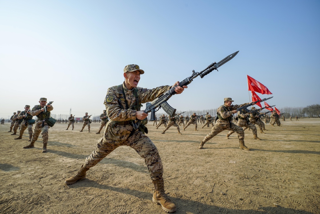 1月3日,武警天津總隊新兵團(tuán)在訓(xùn)練場組織新兵進(jìn)行刺殺訓(xùn)練。