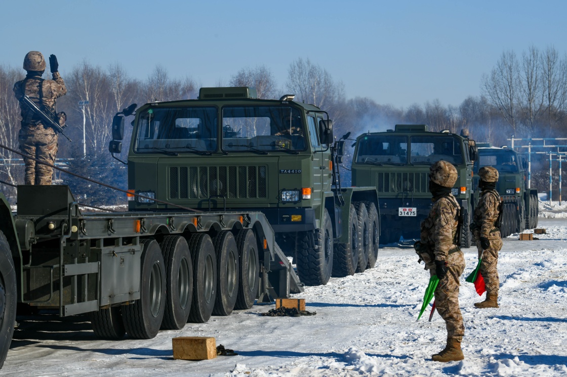 1月3日,聯(lián)勤保障部隊某汽車運輸旅重裝連組織裝卸載訓(xùn)練。