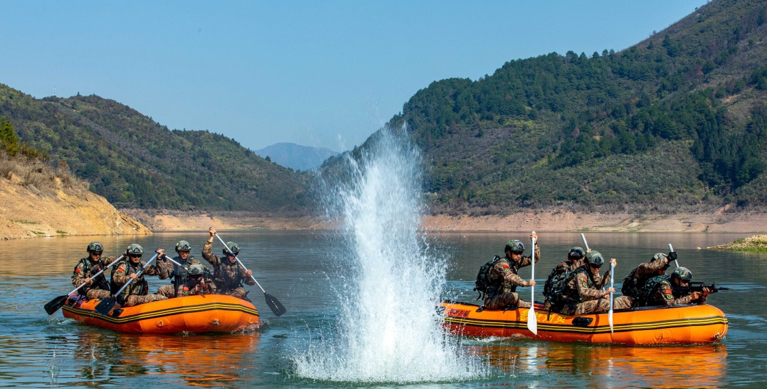 1月3日,武警廣西總隊賀州支隊特戰(zhàn)隊員在陌生水域穿越“暴恐分子”封鎖線。