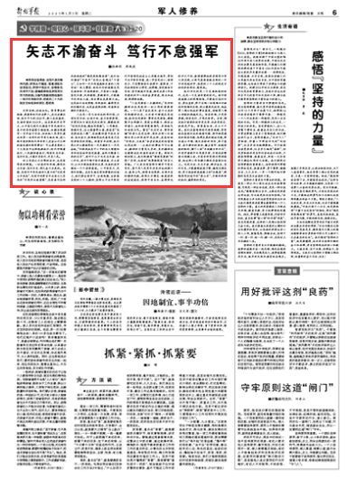 “人總是要有一點精神的。”良好的精神狀態(tài)是做好一切工作的重要前提。一個人有了奮發(fā)有為、奮斗以成的昂揚精神狀態(tài),無論面對順境還是逆境、勝利還是挫折、贊譽還是誘惑,都能集中全部精力、展現(xiàn)全部能力、釋放全部潛力,始終保持蓬勃朝氣、昂揚銳氣和浩然正氣。誓言“水過不去、拿命來鋪”的黃大發(fā)是這樣,退休后傾心打造綠水青山的張連印是這樣,危急時刻“你退后,讓我來”舍身護戰(zhàn)友的杜富國也是這樣……從他們的事跡中可以看出,精神的力量是無窮的,良好精神狀態(tài)能夠迸發(fā)創(chuàng)造奇跡的力量。新時代新征程上,我們既擁有“海闊憑魚躍”的寬廣空間,也面臨“帆舞航程急”的巨大考驗。廣大官兵須堅持不懈學(xué)習(xí)黨史軍史,善于用人民軍隊優(yōu)良傳統(tǒng)砥礪斗志、激昂士氣,保持自信果敢、自強不息的精神風(fēng)貌,保持永不懈怠、銳意進取的奮進姿態(tài),保持中流擊水、奮楫爭先的沖天干勁,激情澎湃地投身強軍興軍火熱實踐,以新氣象新面貌在新的一年開好局起好步,把黨的二十大的既定目標任務(wù)抓到位、落到底。