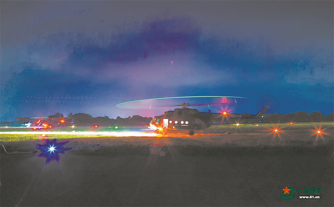 第74集團(tuán)軍某陸航旅組織夜航訓(xùn)練。侯向坤攝