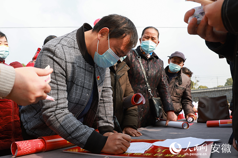 梅張彬在分紅冊上簽名。人民網(wǎng) 張俊攝
