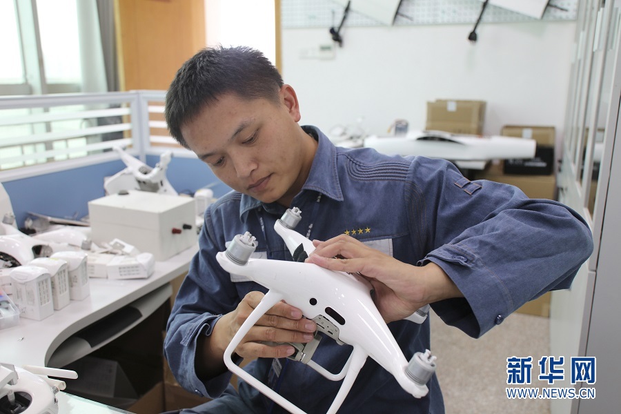 藍譽鑫正在組裝無人機。新華網發(fā)(孔德淇 攝)