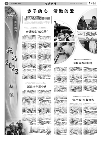 展望2023年,我的心中充滿憧憬。過(guò)去4年,我投身公益志愿服務(wù),開(kāi)啟了自己的“新長(zhǎng)征”。新的一年,我希望能帶動(dòng)更多的退役戰(zhàn)友加入我們的隊(duì)伍,回報(bào)家鄉(xiāng)人民,替烈士盡孝,關(guān)愛(ài)困難老兵。