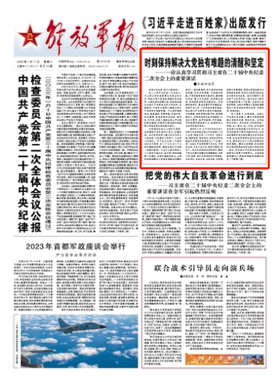 人民軍隊黨的建設(shè)是黨的建設(shè)偉大工程的重要組成部分。作為黨絕對領(lǐng)導(dǎo)下的人民軍隊,必須一刻不停推進(jìn)全面從嚴(yán)治黨,勇于發(fā)揚黨的自我革命精神,解決大黨獨有難題,保持大黨應(yīng)有風(fēng)范,為推進(jìn)新時代強(qiáng)軍事業(yè)提供堅強(qiáng)政治保證。全軍要深入學(xué)習(xí)貫徹習(xí)主席重要講話精神,認(rèn)真落實這次全會的戰(zhàn)略部署,深刻領(lǐng)悟“兩個確立”的決定性意義,增強(qiáng)“四個意識”、堅定“四個自信”、做到“兩個維護(hù)”,貫徹軍委主席負(fù)責(zé)制,在思想上政治上行動上始終與黨中央、中央軍委和習(xí)主席保持高度一致。要學(xué)懂弄通做實習(xí)近平新時代中國特色社會主義思想,深化習(xí)近平強(qiáng)軍思想武裝,落實新時代黨的建設(shè)總要求,構(gòu)建全面從嚴(yán)治黨體系,以有力政治監(jiān)督保障黨的二十大決策部署落實見效,嚴(yán)格落實中央八項規(guī)定精神、軍委十項規(guī)定及其實施細(xì)則精神,把紀(jì)律建設(shè)擺在更加突出位置,持之以恒正風(fēng)肅紀(jì)反腐,持續(xù)純正部隊政治生態(tài),全面提高我軍加強(qiáng)黨的領(lǐng)導(dǎo)和黨的建設(shè)工作質(zhì)量,真正把黨的政治優(yōu)勢和組織優(yōu)勢轉(zhuǎn)化為制勝優(yōu)勢。