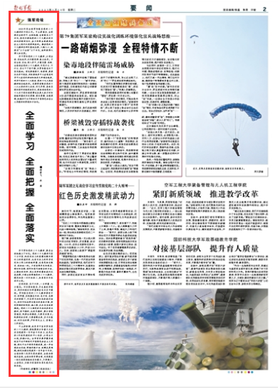 2023年是全面貫徹落實(shí)黨的二十大精神的開局之年。習(xí)主席指出,全黨要在全面學(xué)習(xí)、全面把握、全面落實(shí)上下功夫,堅定不移把黨的二十大提出的目標(biāo)任務(wù)落到實(shí)處,奮力奪取全面建設(shè)社會主義現(xiàn)代化國家新勝利。推動黨的二十大精神在部隊(duì)落地生根、入腦入心,就要在“三個全面”上下功夫,始終保持大事大抓態(tài)勢。