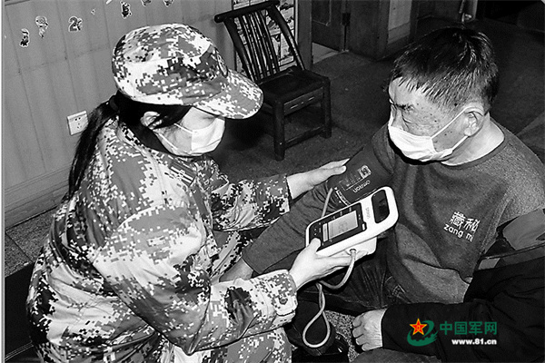 春節(jié)前夕,“張超民兵先鋒連”民兵到張超烈士家中慰問,并為他的家人測量血壓。朱 林攝