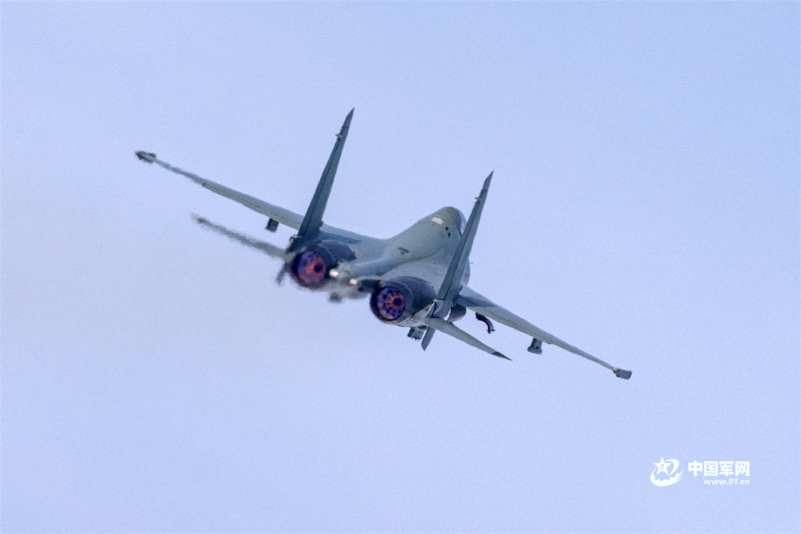 戰(zhàn)機加力升空展開對抗訓練。楊盼 攝