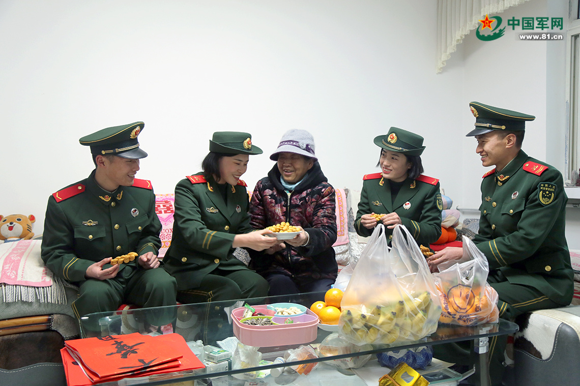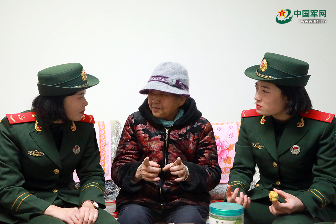 “惠媽媽?zhuān)罱^(guò)得咋樣?”“好著呢,好著呢,現(xiàn)在不愁吃不愁穿的,天天就像過(guò)年一樣!”圍坐在一起,官兵拉著惠媽媽的手嘮起了家常。