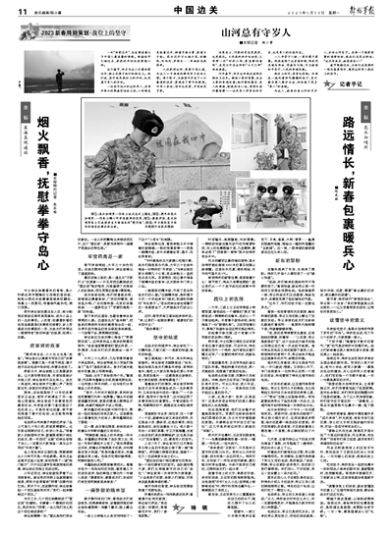 遠離故土,對家的思念更濃烈,也更深沉。大年夜的拜年電話里,父母那一句“好好工作,家里都好著呢”,總是讓守在邊防的“七尺兒郎”淚流滿面。