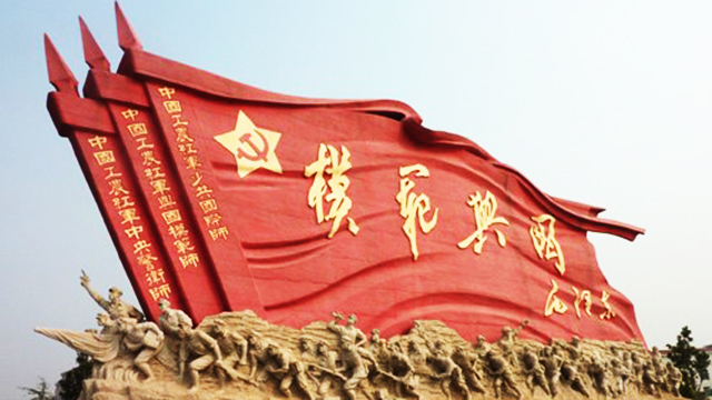 在興國縣將軍園,3面紅色軍旗組成的巨大雕塑上,這4個金色大字在陽光下熠熠生輝。興國、贛南、贛閩粵原中央蘇區(qū),這些在紅色歷史中的閃亮地標,正闊步踏上發(fā)展新征程。
