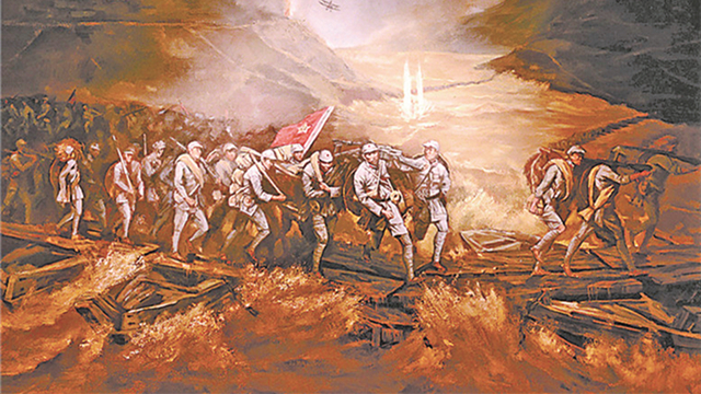 1951年6月,毛澤東提出“充分準備持久作戰(zhàn)和爭取和談達到結(jié)束戰(zhàn)爭”,以及“持久作戰(zhàn)、積極防御”的指導(dǎo)方針,志愿軍由運動戰(zhàn)轉(zhuǎn)為陣地戰(zhàn)。在歷時兩年零一個月異常殘酷的戰(zhàn)斗中,志愿軍用鮮血和生命粉碎了敵人的“絞殺戰(zhàn)”,建成了“打不爛、炸不斷的鋼鐵運輸線”。上甘嶺戰(zhàn)役,涌現(xiàn)出黃繼光、孫占元、胡修道等偉大的革命英雄主義戰(zhàn)士,誕生了讓中國人熱血澎湃的上甘嶺精神。