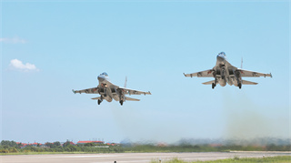 機(jī)場上,戰(zhàn)鷹呼嘯,起降頻繁;陣地上,油機(jī)轟鳴,天線飛轉(zhuǎn)。