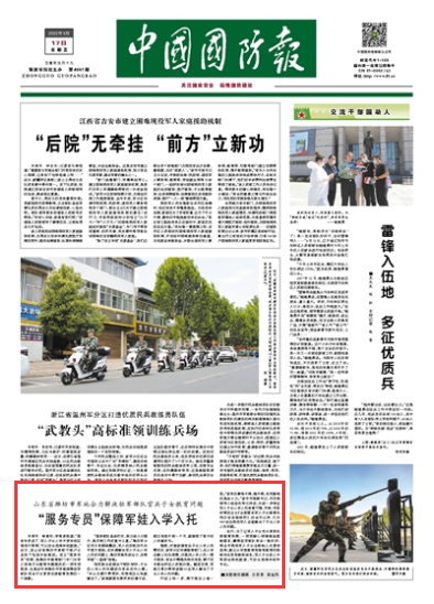 中國國防報(bào)訊 韓富旺、李海龍報(bào)道:“服務(wù)專員說了,軍人子女入學(xué)不受學(xué)校區(qū)域劃片限制,可以自主選擇學(xué)校就讀?!苯?,駐山東省濰坊市某部干部盧云龍放下電話興奮地說。設(shè)立“服務(wù)專員”機(jī)制,是濰坊市教育部門專門為軍人咨詢子女教育問題提供的一項(xiàng)專項(xiàng)服務(wù),也是近年來濰坊市軍地保障駐軍部隊(duì)官兵子女享受優(yōu)質(zhì)教育資源的一個(gè)縮影。