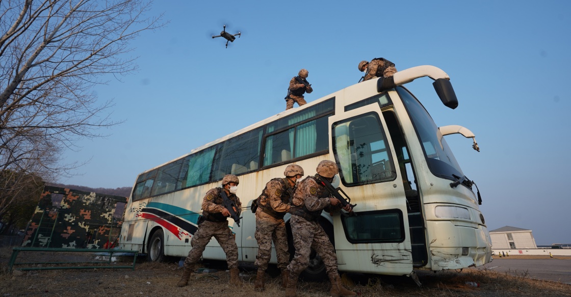 1月3日,武警安徽總隊(duì)蚌埠支隊(duì)組織特戰(zhàn)隊(duì)員開展公交車反劫持訓(xùn)練。