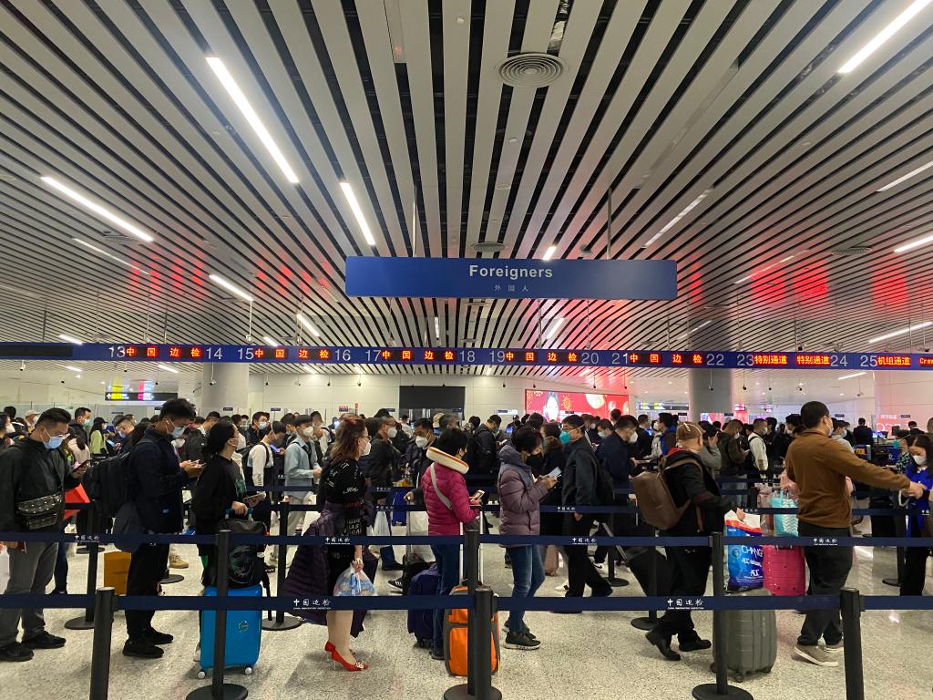 1月8日上午,白云機場口岸入境現(xiàn)場。(受訪者供圖)
