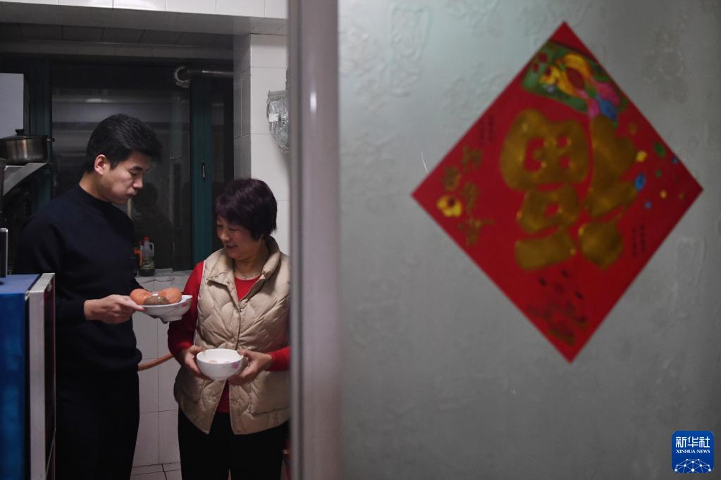 1月9日清晨,白旭偉(左)在家中和母親一起準(zhǔn)備早飯。新華社記者 陳斌 攝