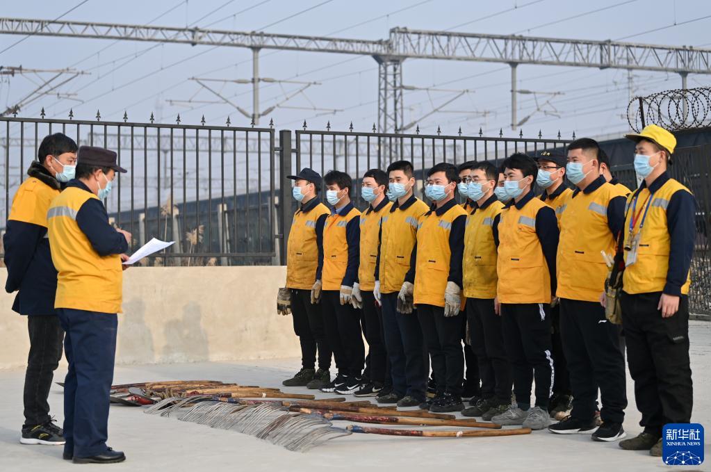 1月6日,“大學(xué)生工區(qū)”的職工在天津市北辰區(qū)北倉(cāng)站內(nèi)進(jìn)行作業(yè)。新華社記者 李然 攝