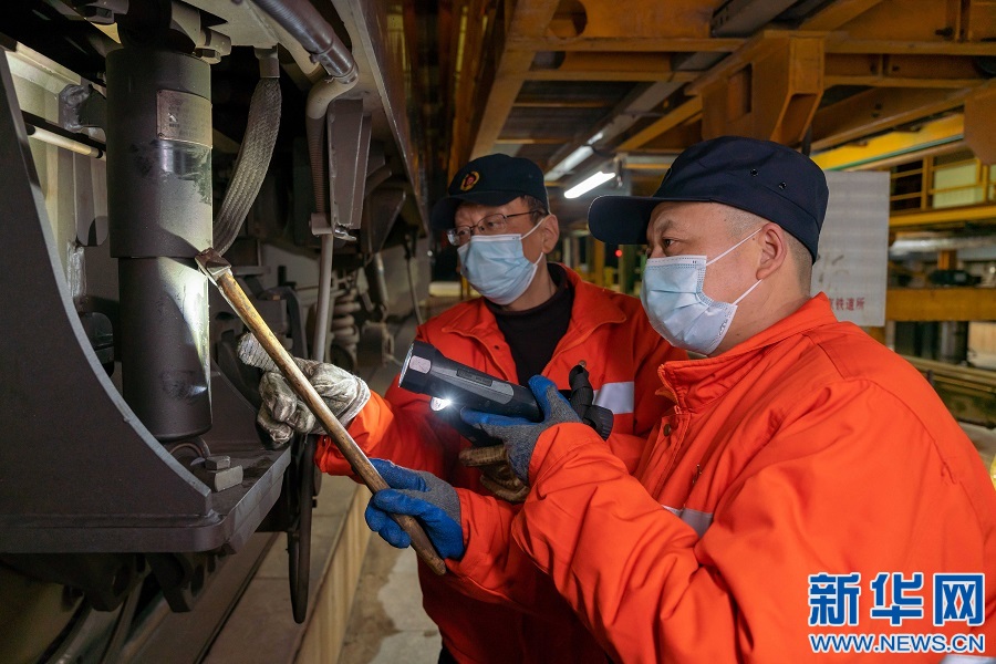 春運(yùn)期間是王德軍與王德華兩兄弟最忙碌的時候。弟弟王德軍負(fù)責(zé)檢查機(jī)車走行部,哥哥王德華則是主修。每臺機(jī)車入庫前,王德軍就手拿檢點(diǎn)錘與手電筒,早早地站在檢車臺位邊,待機(jī)車停穩(wěn)妥后,他便揮動檢點(diǎn)錘錘檢螺絲,“砰砰砰”的清脆聲響伴隨著整備場機(jī)車啟動的轟鳴聲,就像是在奏響著悅耳的“交響樂”。機(jī)車走行部部件經(jīng)過長時間使用,容易出現(xiàn)螺絲松脫,必須通過檢點(diǎn)錘敲擊螺絲發(fā)出的聲響來判斷是否松動,如果哪個“音符”聲音不對了,王德華就要馬上過來進(jìn)行修復(fù)檢驗,經(jīng)過“調(diào)音”后,王德華再用檢點(diǎn)錘敲擊螺絲。兩兄弟在一起工作近二十載,為機(jī)車“調(diào)音”,保障旅客出行安全。(趙磊)
