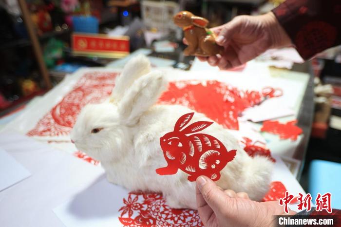 1月9日,南京市工藝美術(shù)大師、非遺剪紙傳承人陳耀在其工作室展示他創(chuàng)作的兔年剪紙作品,迎接新春佳節(jié)的到來。據(jù)了解,陳耀從6歲開始學習剪紙,五十多年來,他用剪紙手藝剪過現(xiàn)代高樓大廈,剪過十二生肖,也剪過人世間的生活百態(tài)。