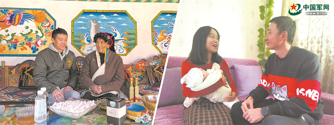 圖左:1月6日,乘坐包機回家的該旅指導員王彤在四川甘孜家中陪母親聊天,這是他時隔一年后再次休假回家。