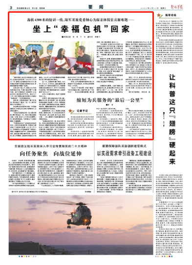 一架“幸福包機”從高原飛向內地,相信它飛越的不僅僅是萬水千山,更是讓關愛直達官兵心坎的障礙,縮短的是上下同欲、萬眾一心的距離。