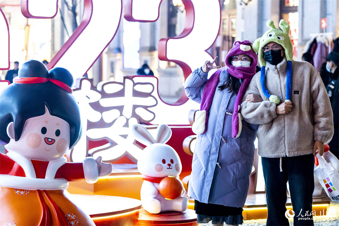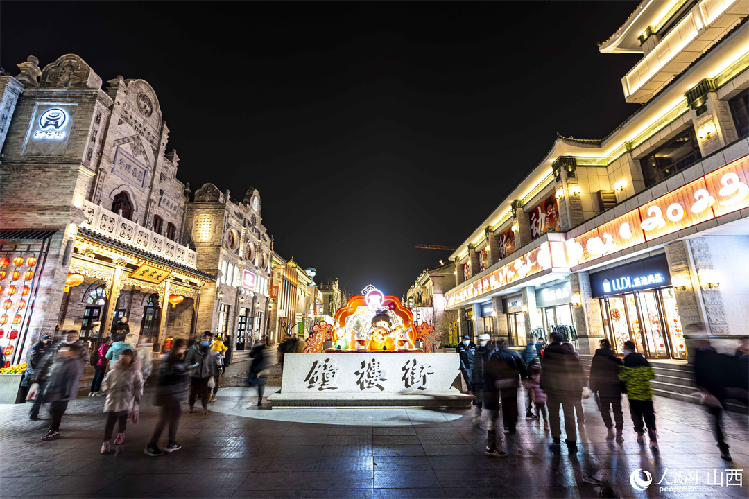 每逢夜幕降臨,鐘樓街上燈光璀璨,人頭攢動(dòng)。隨處可見的新年兔子元素,為城市增添了年味,游客紛紛駐足拍照,喜氣洋洋,年味兒十足。