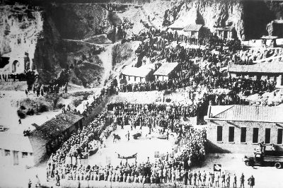 1943年春節(jié)延安各地秧歌隊(duì)到楊家?guī)X為中央機(jī)關(guān)拜年