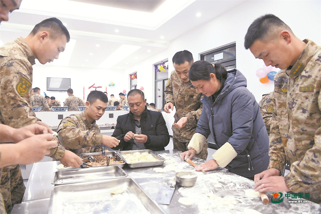 肖思遠父母與“楊根思連”官兵一同包餃子。季 鵬攝