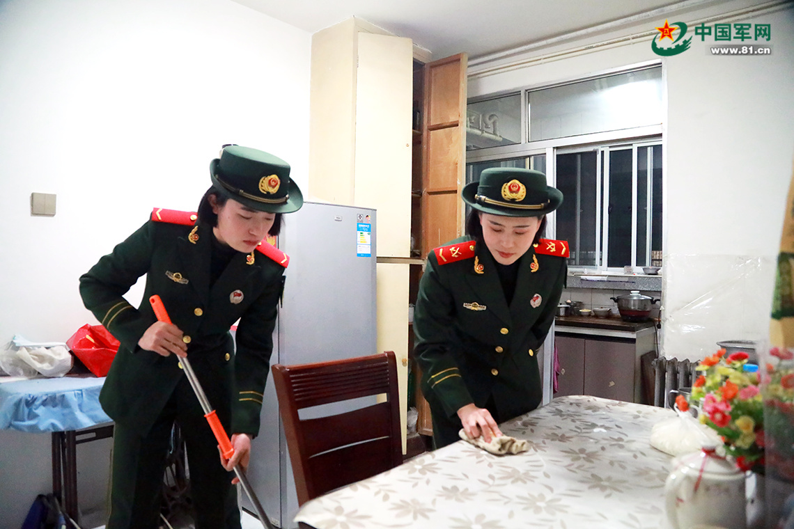 官兵為惠媽媽家打掃衛(wèi)生。劉偉 攝