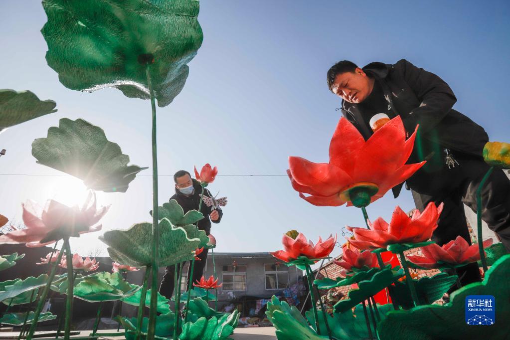 1月31日,河北省遵化市東舊寨鎮(zhèn)石橋頭村的民間藝人在組裝河燈,為元宵佳節(jié)增添喜慶氛圍。