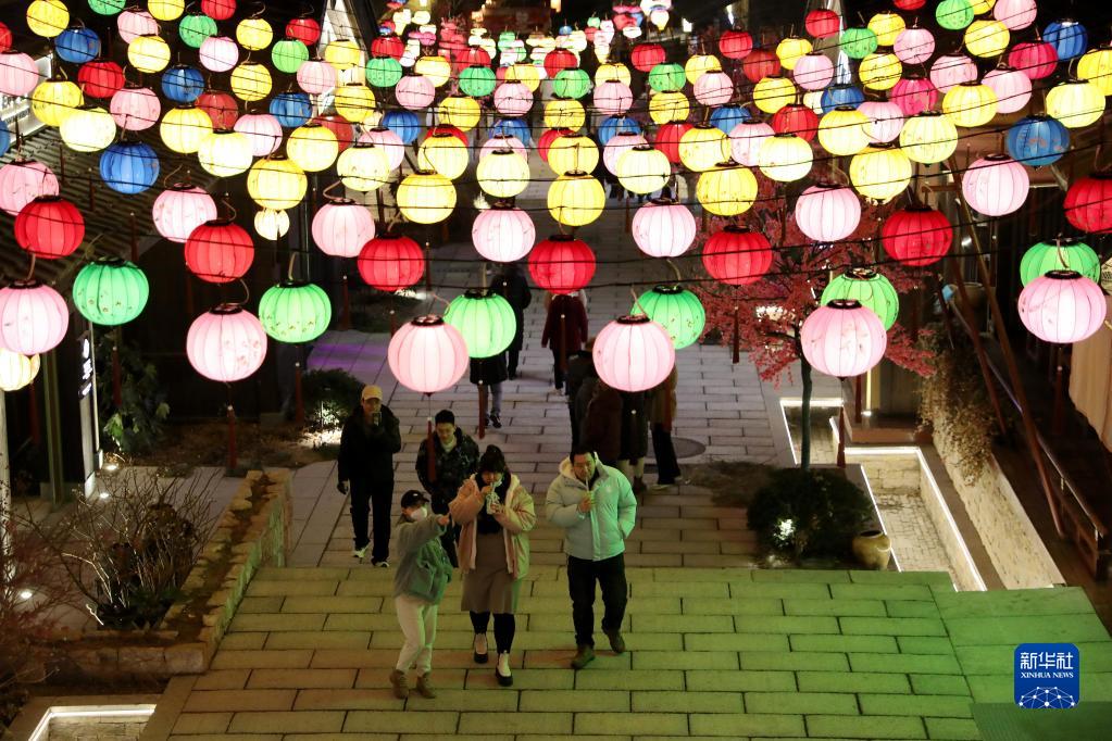 1月30日,游客在山東省青島西海岸新區(qū)阿朵花嶼景區(qū)觀賞花燈。