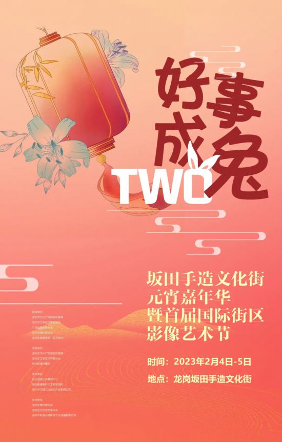 兔年元宵佳節(jié)到誘人福利給“雙份”2月4日一5日好事成“兔”(TWO)——坂田手造文化街元宵嘉年華暨首屆國際街區(qū)影像藝術節(jié)將精彩上演