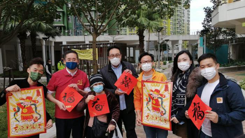 香港菁英會(huì)聯(lián)同九龍社團(tuán)聯(lián)會(huì)觀塘地區(qū)委員會(huì)、林瑋區(qū)議員辦事處和安泰居民會(huì)在安泰邨共同舉辦“菁準(zhǔn)扶貧,新春送暖”活動(dòng),向青年家庭派發(fā)新春福袋。