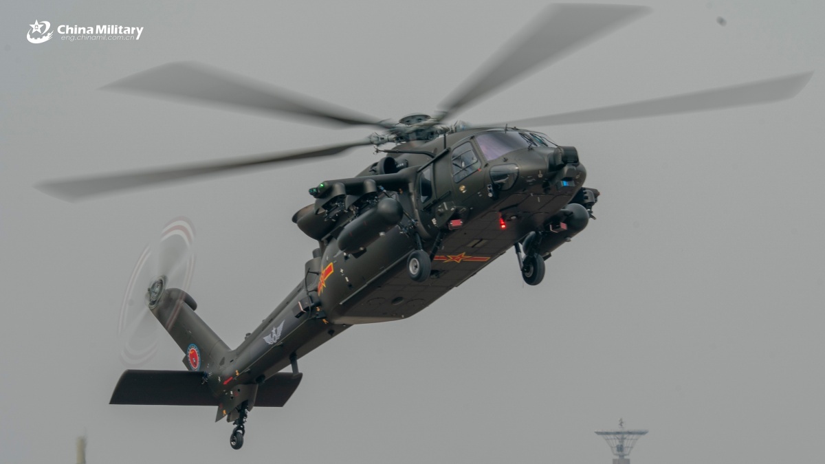Z-20T assault helicopter attached to the Chinese PLA Army's aviation troops performs flight demonstration during its debut at the 7th China Helicopter Exposition on October 16, 2025. (eng.chinamil.com.cn)