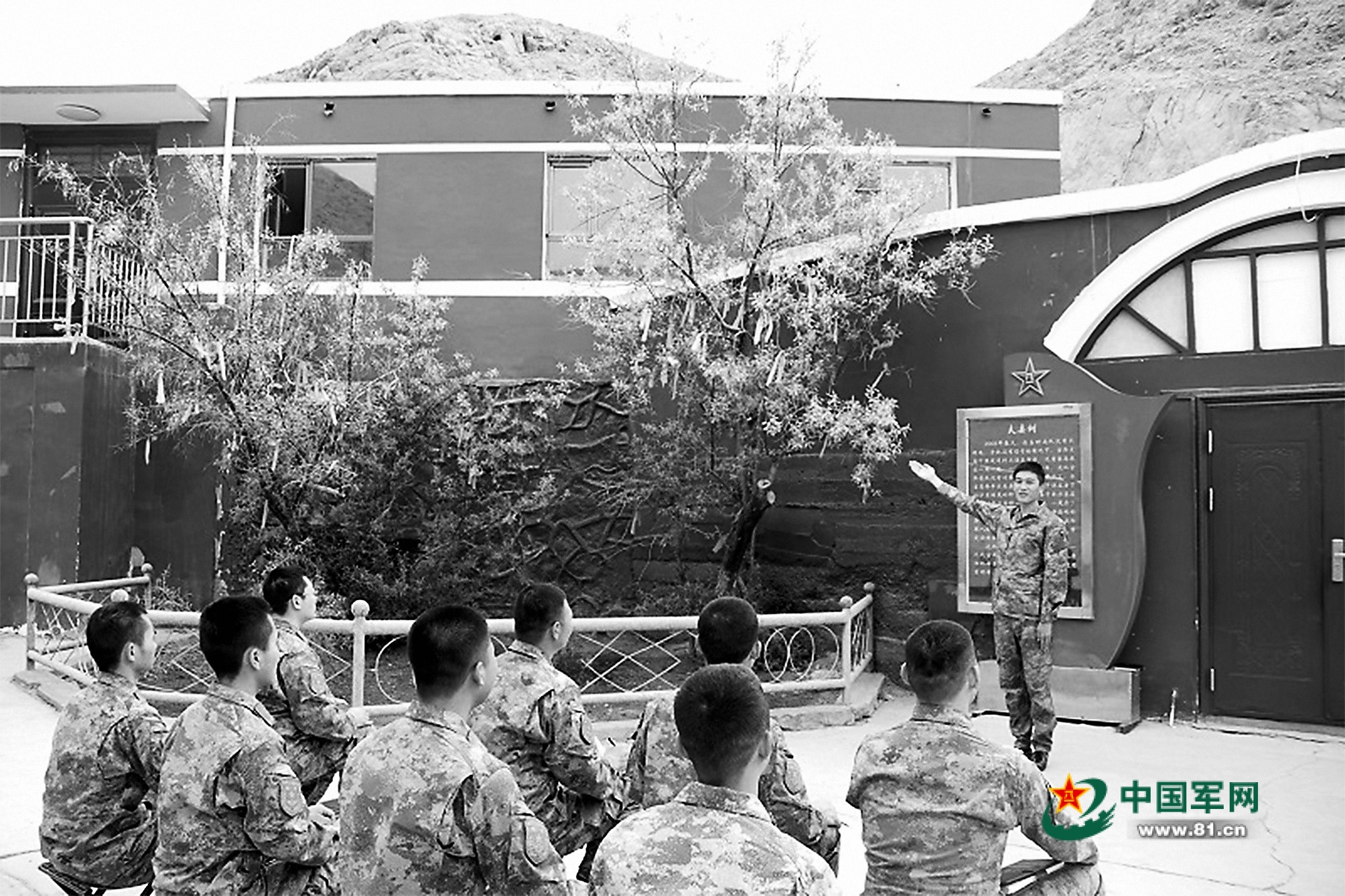 一位排長在“夫妻樹”前講述連隊(duì)光榮傳統(tǒng)故事。開吾賽爾攝