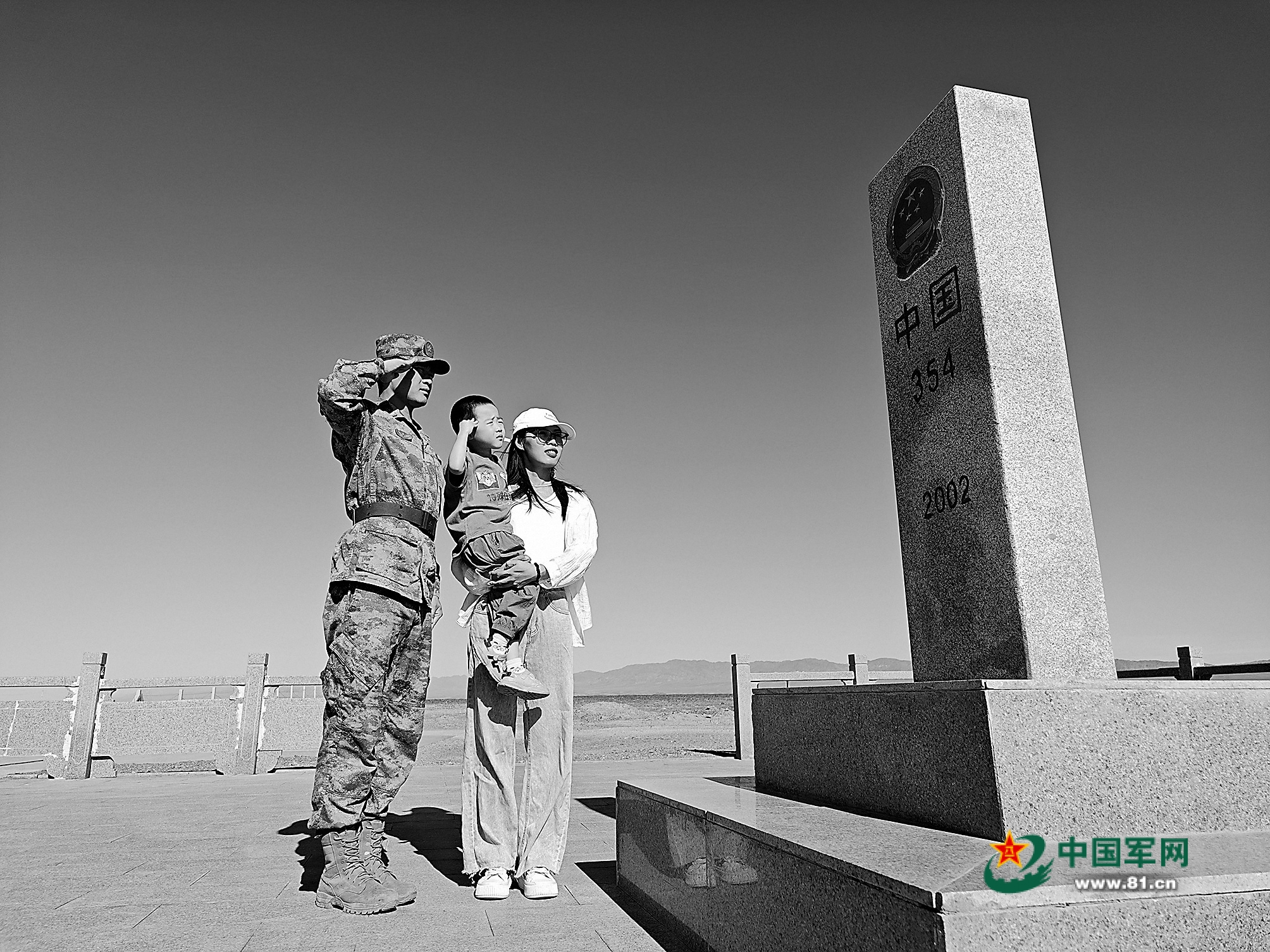 妻兒來隊(duì)探親,岳明明一家三口來到界碑前。開吾賽爾攝