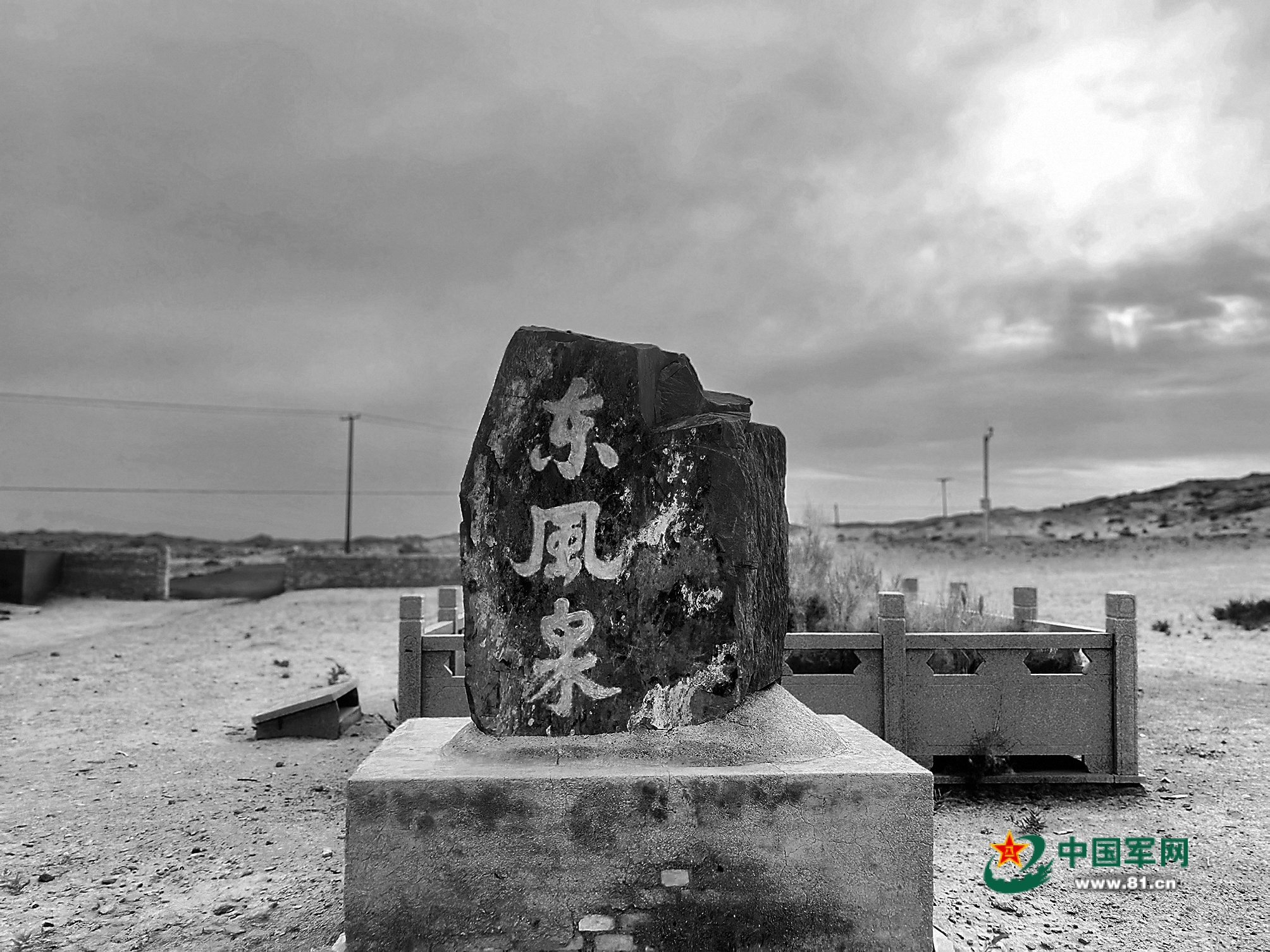 一級(jí)上士岳明明帶領(lǐng)記者向戈壁深處走去。這里是上世紀(jì)70年代修建的連隊(duì)第二代營房遺址,土坯結(jié)構(gòu)的房屋已經(jīng)坍塌。狂風(fēng)卷著砂礫,打在臉上如針扎一般,老營區(qū)的一塊石壁上,“扎根黑戈壁,忠誠守邊防”10個(gè)大字艷紅如初。