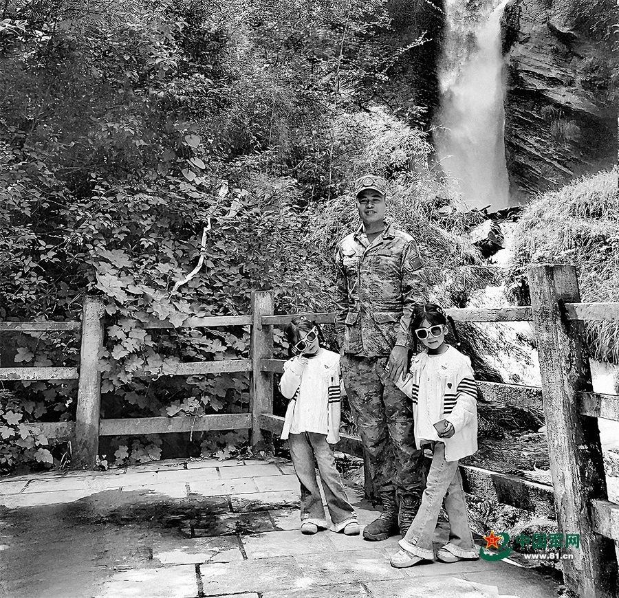 劉波與女兒在哨所駐地合影。