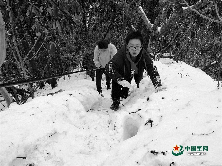 周忠燕和胡博文探訪哨所,與官兵一起攀登雪山。