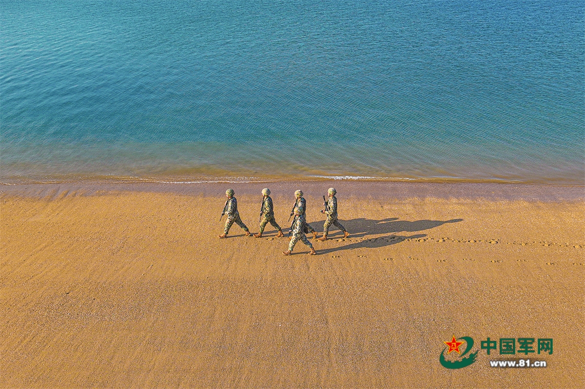 陸軍某旅某營四連官兵在海灘巡邏。 金愉凱攝