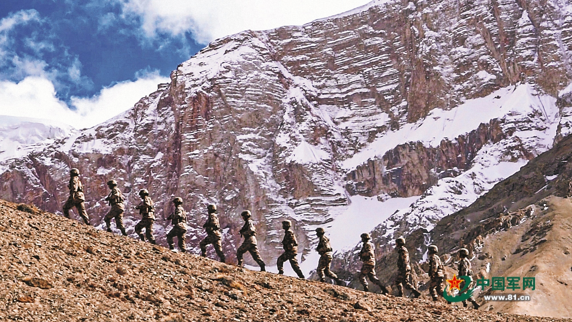 新疆和田軍分區(qū)某邊防團(tuán)官兵在高原巡邏。