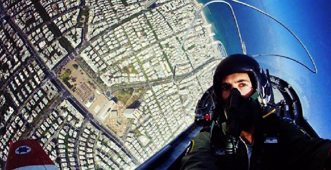 ??? 以色列空軍飛行員拍的自拍照。從照片中可以看出來(lái),這位以色列空軍的飛行員拍攝這張照片時(shí),飛機(jī)正在翻滾。